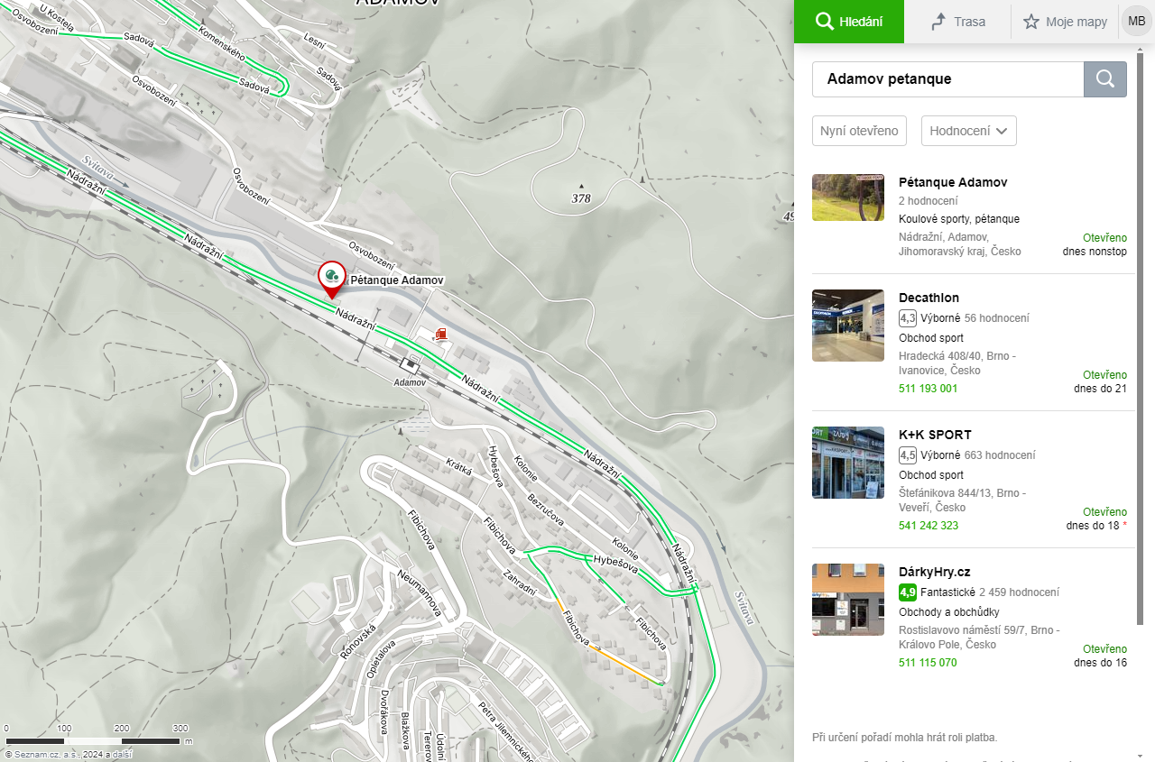 Hrát se bude na hřištích pro petanque v Adamově, u nádraží viz mapa.